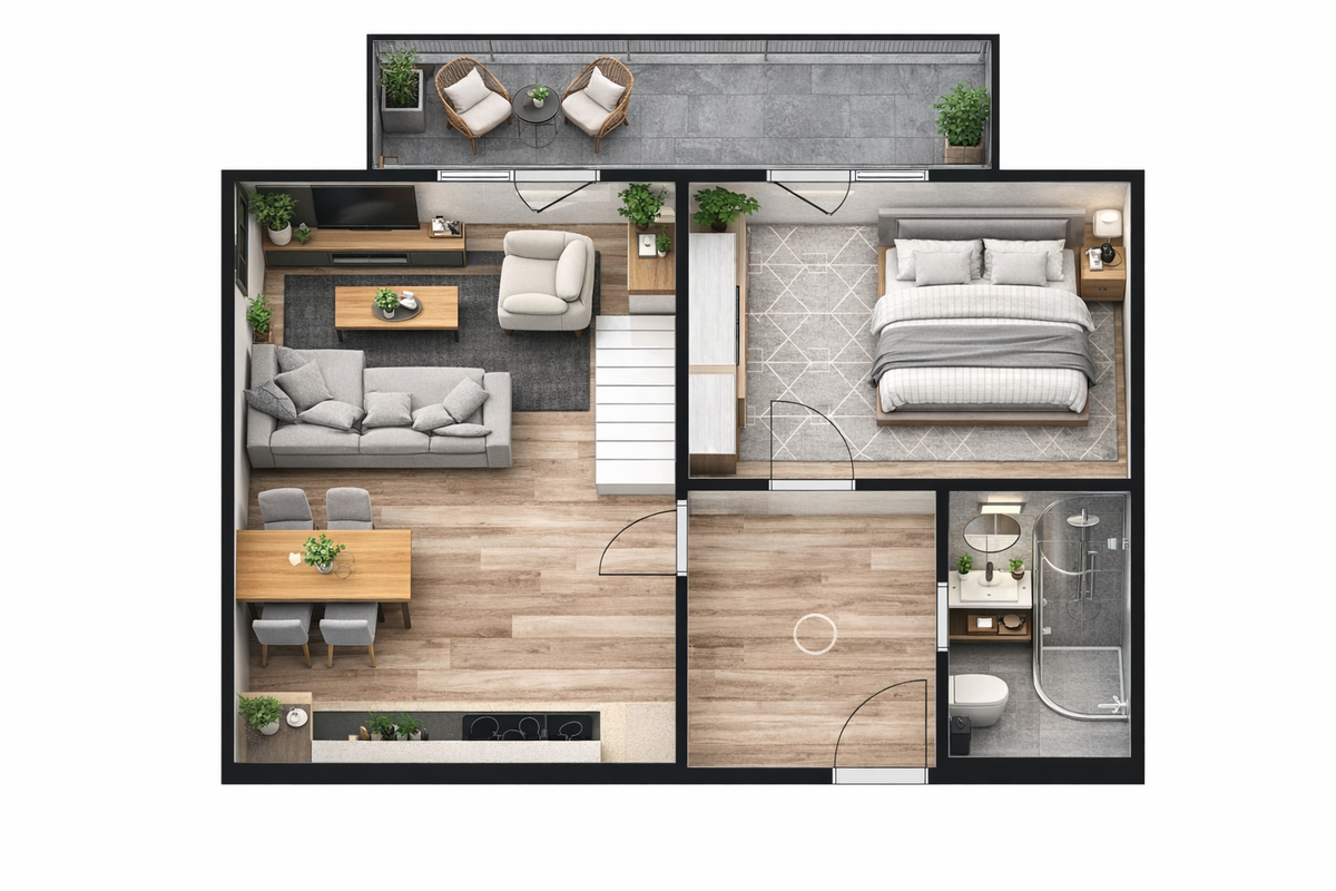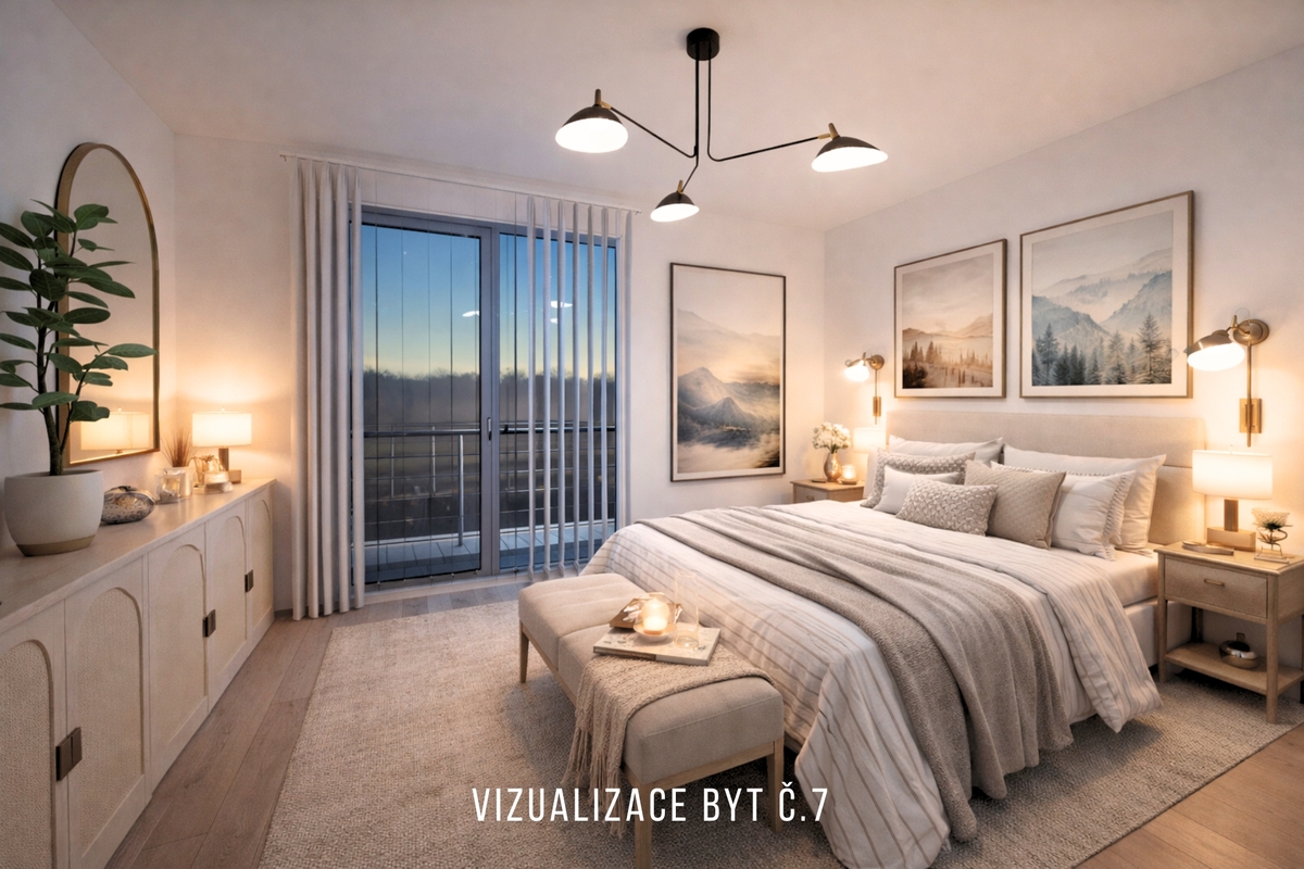 Byt č. 7 se nachází v druhém nadzemním podlaží. Byt má užitnou plochu 49 m² s balkónem 7,3 m². Dispozice bytu: obývací pokoj 25,29 m² spojený s prostorem kuchyňského koutu, ložnice 13.23 m², koupelna se sprchovým koutem a WC. Pro budoucího majitele bylo myšleno na vše, proto ke každému bytu patří vlastní parkovací stání, vlastní uzamykatelná sklepní kóje a nechybí ani společné prostory jako je kočárkárna, technická a úklidová místnost.